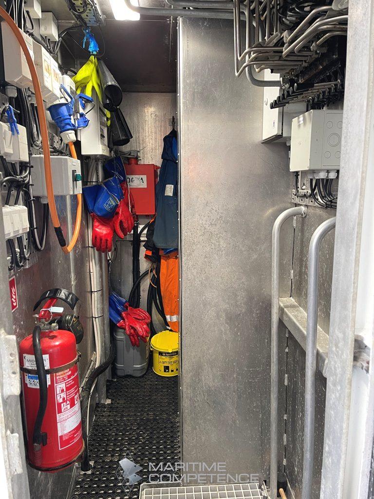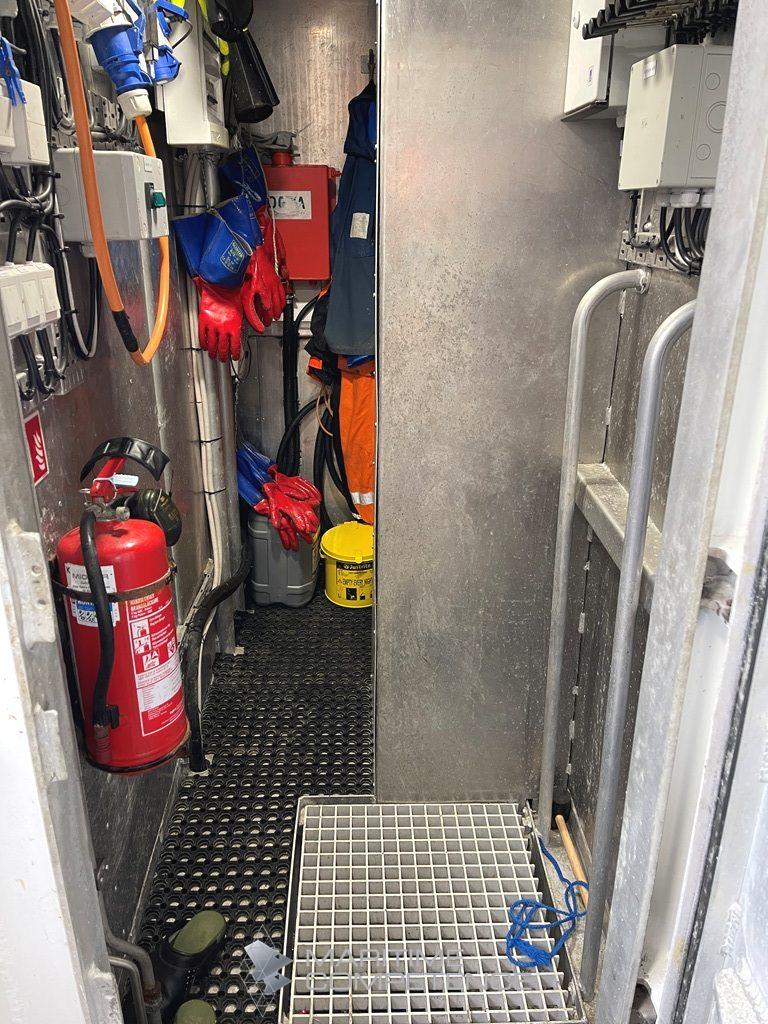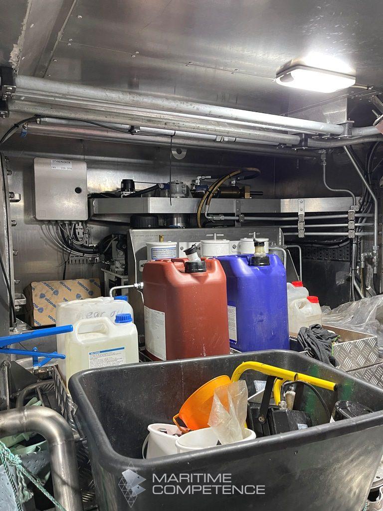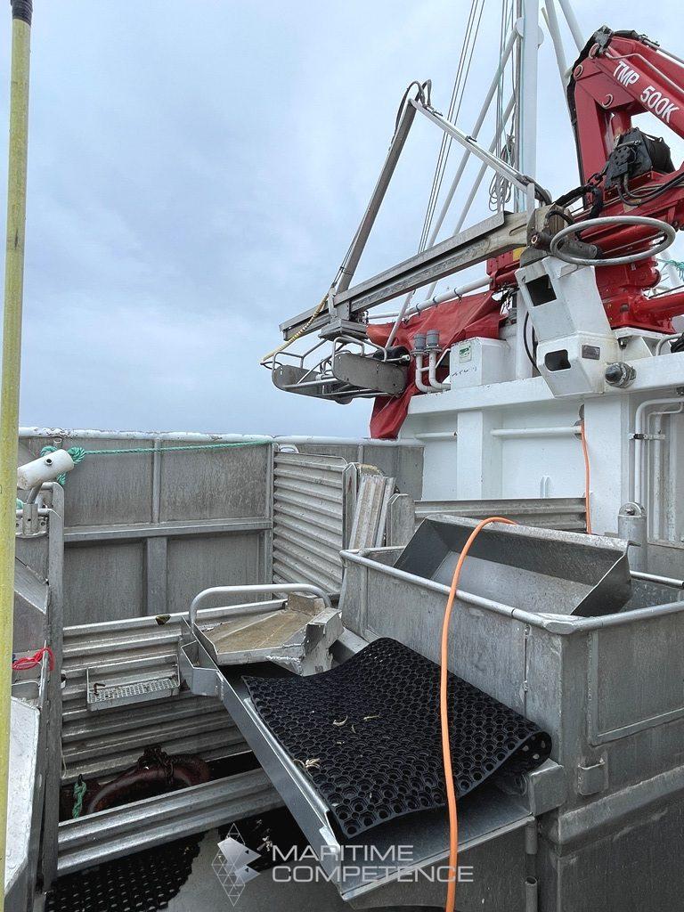 Ca 10 tonn i konteinere, 17 stk. Godkjent for bulk med midtskott. Renner til konteinere.
